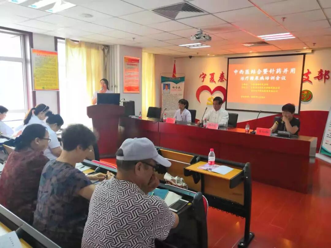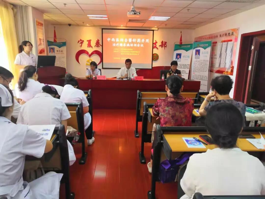 热烈祝贺宁夏秦杨中医医院“中西医结合暨针药并用治疗糖尿病”培训会议及健康咨询活动圆满结束!发表时间:2019-09-29 22:48 热烈祝贺“中西医结合暨针药并用治疗糖尿病”培训会议及健康咨询活动圆满结束! 2019年7月14日,微风轻拂,给炎热的伏天带来了一丝清凉。在宁夏秦杨中医医院四楼会议室,聚集了来自银川各个兄弟医院或基层单位的精英骨干,前来参加由宁夏秦杨中医医院联合甘肃安吉尔医疗器械有限公司及贵州天安药业股份有限公司举办的中西医结合、针药并用治疗糖尿病培训会议。 此次会议,特邀请国家第六批中医药师承指导老师、全国基层优秀名中医、中华德艺双馨名中医、自治区名老中医杨仓良;自治区人民医院内分泌专家李红梅和宁夏针灸协会理事会理事张兆华等三位主任医师,为到会的医师学者们分享治疗糖尿病的病案及诊疗方法。 ONE 大会第一项:主持人致辞,并宣布大会开始